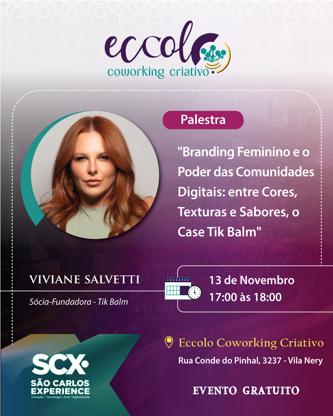Descrição: Esta palestra explora como o branding inovador e as comunidades digitais estão redefinindo modelos de negócios e criando novas infraestruturas de engajamento. A partir do case Tik Balm, será apresentada a jornada de construção de uma marca que mobiliza comunidades femininas e gera valor por meio da inovação digital, do pertencimento e da experiência compartilhada.